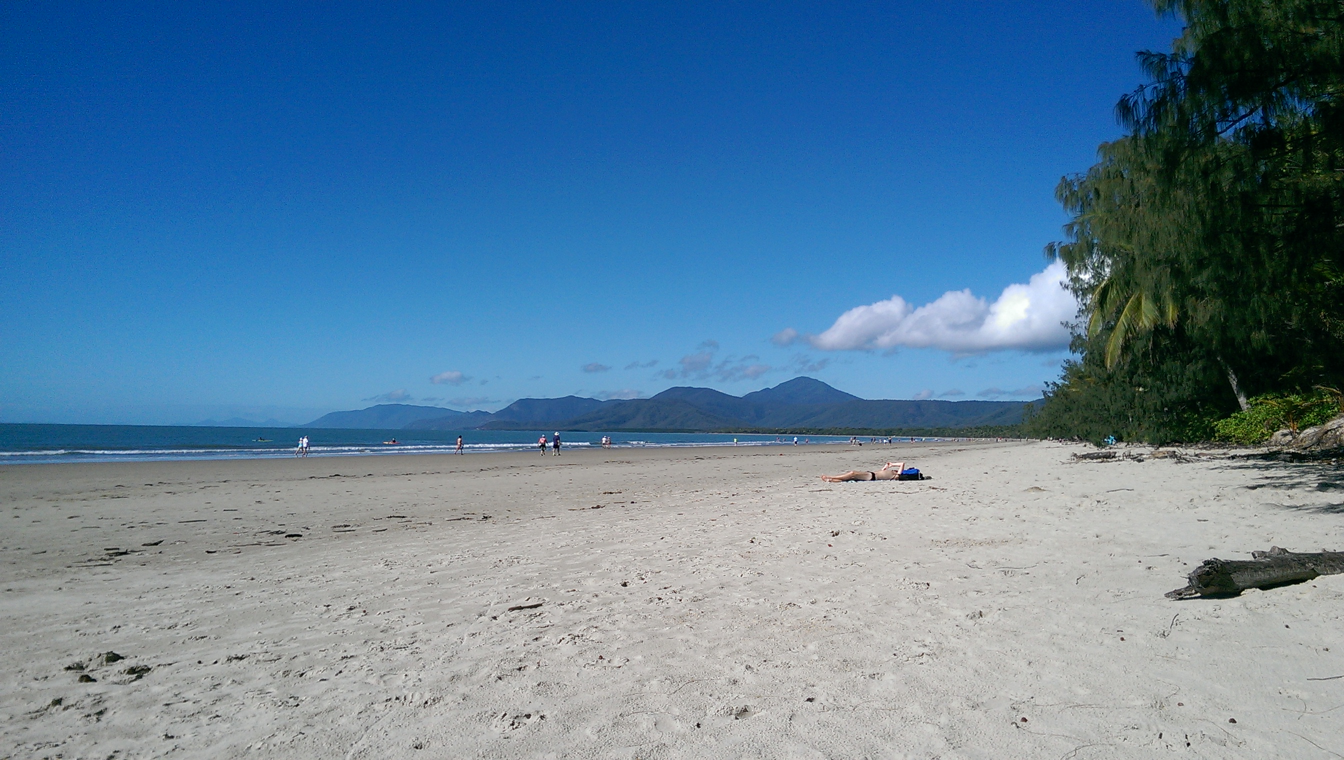 While here it hit us how much we had crammed into the preceding few days. Our ambitious plans to explore the Great Barrier Reef evaporated as we opted to sunbake on the glorious white sands of the beach instead. Unlike in Cape Tribulation, the weather was sublime, and the mercury pushed 28 degrees – which was more than welcome after the frigid days I’d been suffering in Sydney prior to leaving. We even had to invest in some suncream because we’d forgotten to bring any, and we both managed a bit of a tan =D