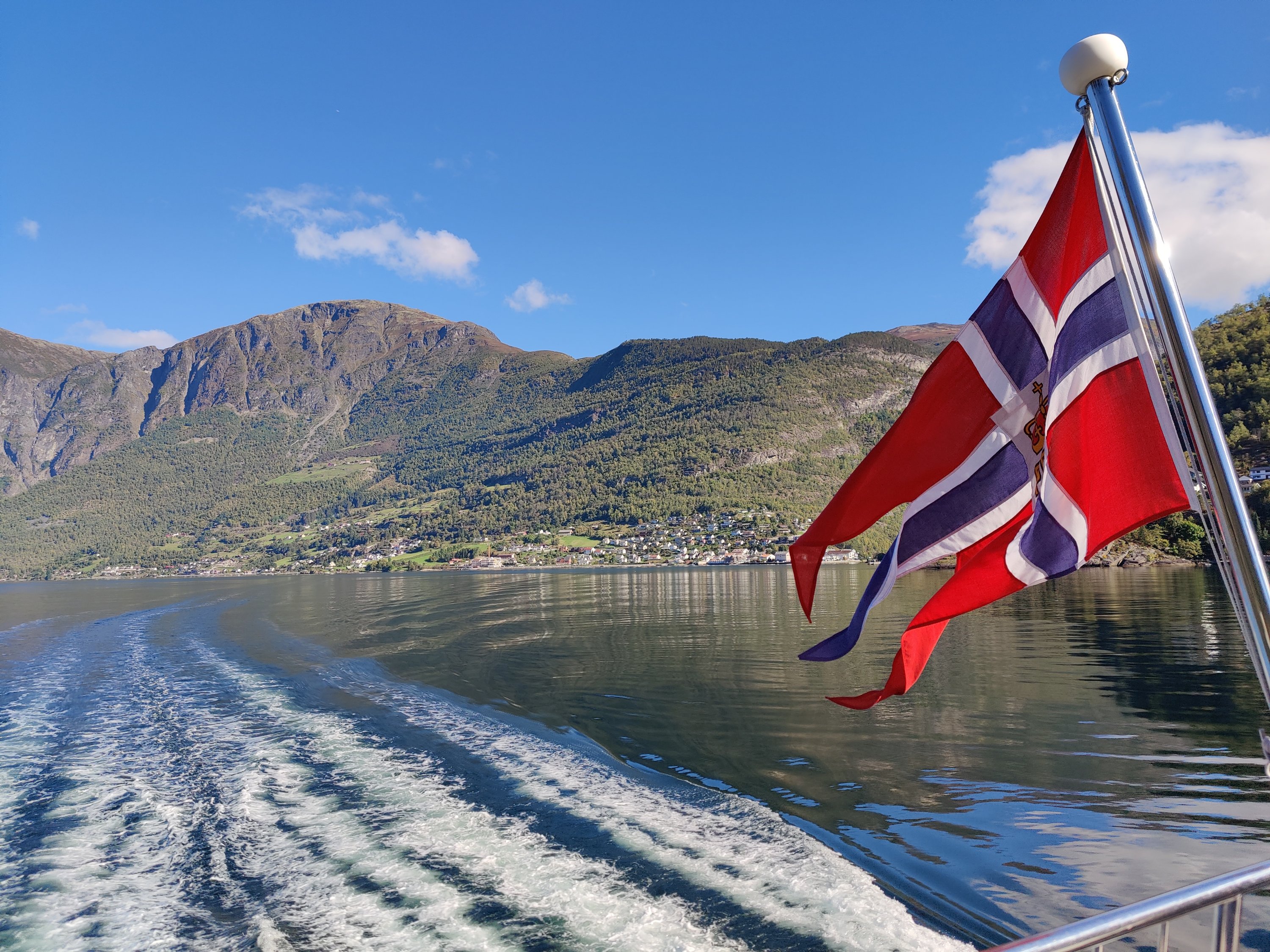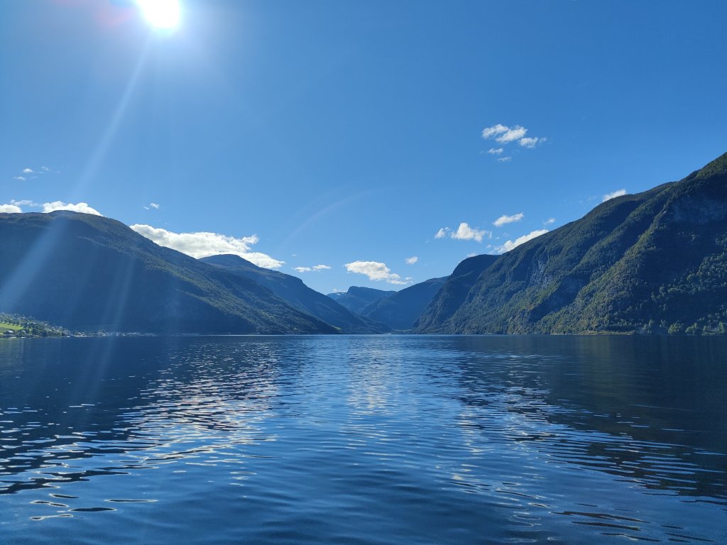 The highlight of our stay here however was undoubtedly the 2 hour ferry ride we took from Gudvangen up the Nærøyfjord (I’ve no idea how to pronounce it either) and back down the Aurlandsfjord to Flåm. Now perhaps due to experiencing many disappointments in my life, I was fully anticipating the weather to be crap for our trip in Norway. I mean, it’s not exactly famous for its sunshine and warmth is it – and we were here in mid-September. I was ready to make the best of it. But somehow, inexplicably, we were blessed with some of the most splendid weather imaginable. I was practically jumping for joy while on that ferry, as we got to experience all this stunningly gorgeous scenery with dazzling sunshine and clear blue skies. It was an absolute dream come true – just look at the pictures! It was absolutely magical.