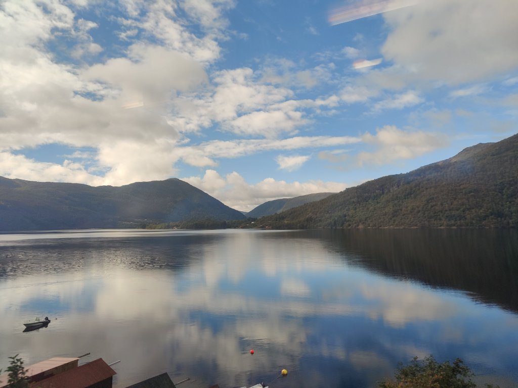 Our next leg of the journey took us north east to the village of Flåm, located at the end of the Aurlandsfjord. Despite its tiny population, Flåm plays host to hundreds of thousands of tourists each year, who arrive largely by cruise ship, or via the Flåm railway. The trainride from Bergen to Flåm was impossibly scenic – the railway hugged the side of numerous bodies of water, providing us with sensational views of the forests and mountain scenery. Please enjoy some of the blurry photos I took out of the window of the moving train 🙂