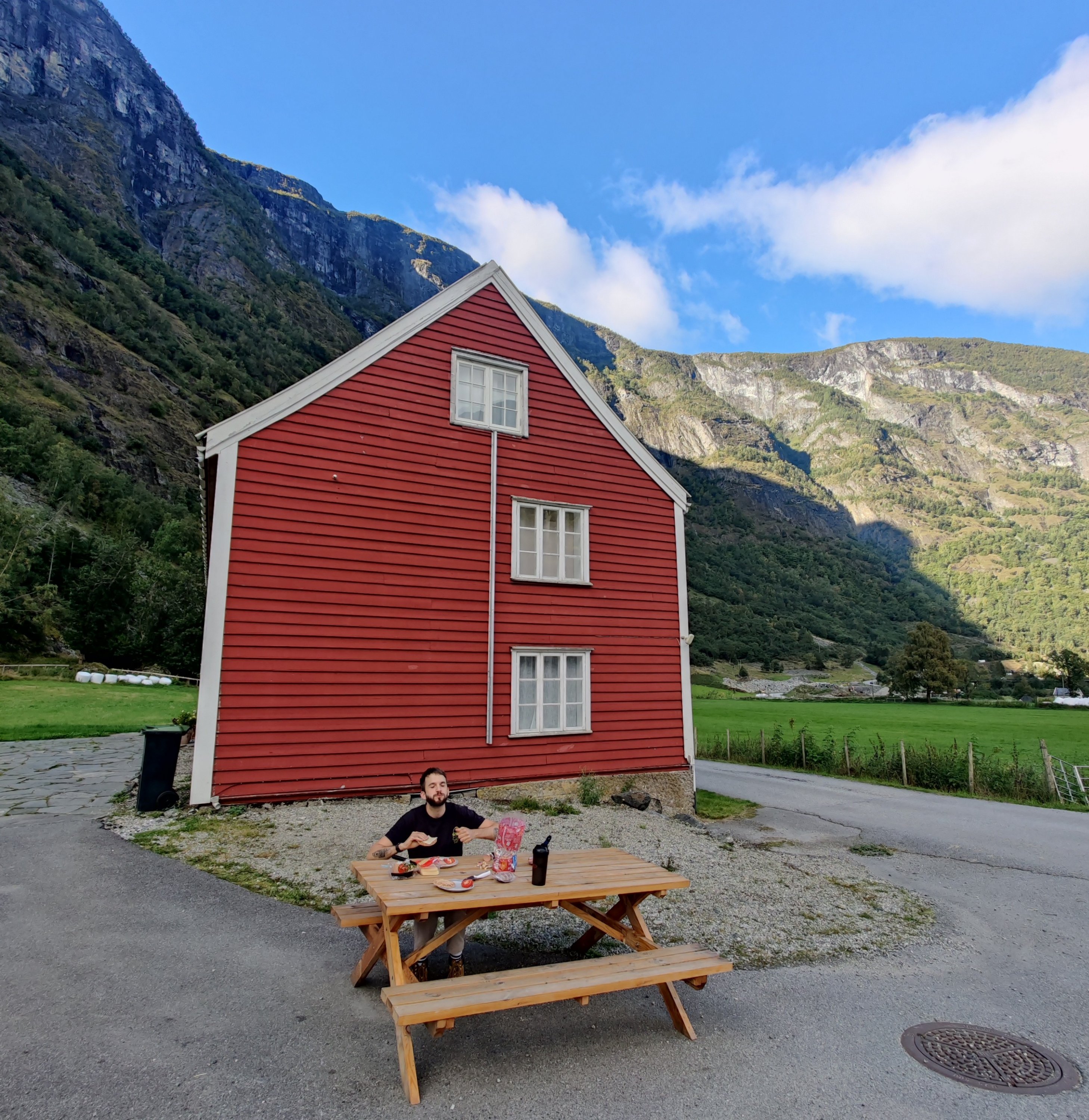 Flåm has pretty much everything you’d need for 2 nights in the mountains. Hotels, a smattering of restaurants, many shops selling waterproof coats, and a supermarket. We were keen to do some hiking while here – which we sort of achieved – although it wasn’t quite the intrepid adventure we had hoped for as the main trails just went along the roads. We did climb up to a waterfall overlooking the valley however which was pretty magnificent.