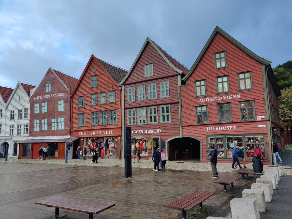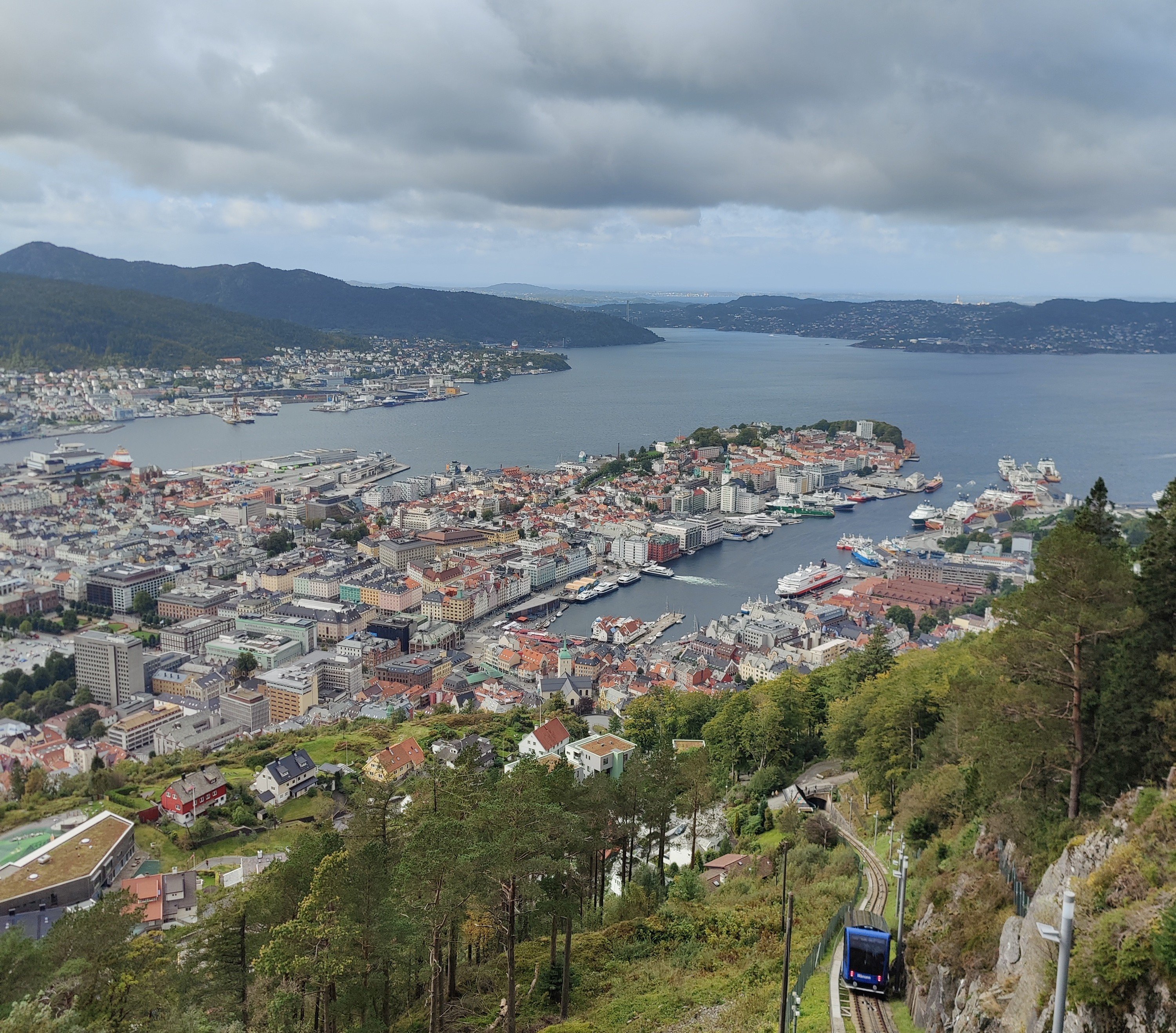 Our first stop was Norway’s second largest city, Bergen. It sits on the west coast of the country at a latitude equivalent to that of the Shetland Islands. So it’s pretty far up there. An important port city, it has a compact centre wedged between the water and steep hills. As well as some charming and colourful architecture to see, it is also just a stone’s throw from mountains, forests and lakes, which are all easily accessible on foot from the city. We therefore spent a lot of time in Bergen walking. Along the harbour, up the hills, down the city streets, and among the forests.
