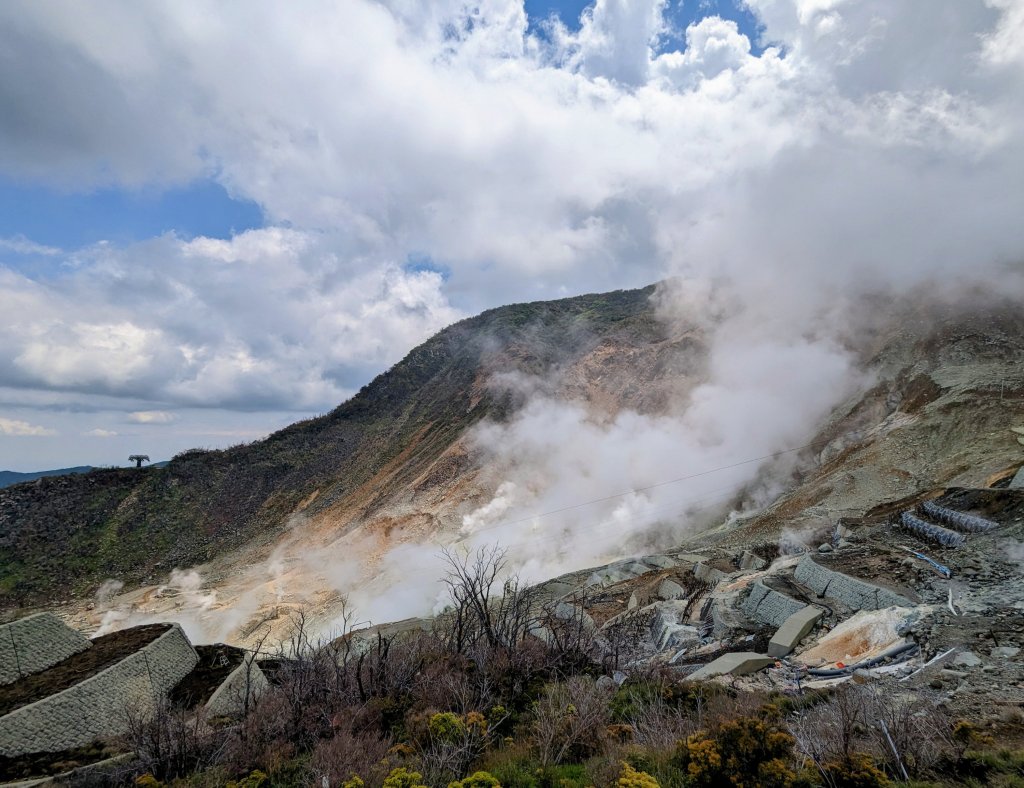 Owing to its volcanic origins, the scenery here is unlike anything I’ve never seen. From Hakone I took a cable car to Owakudani station, plumes of sulphurous steam venting out of the ground. I took another cable car to the top of Mt. Komagatake, and from there I could see all of Lake Ashi, the mountains bordering it on the other side, the flat plain beyond them, and then the sea. I felt like I was looking down on an actual map of the world, it was wild. For these first few days, the weather was fairly cloudy, and my best view of Fuji was the swirling storm clouds surrounding it, thunder booming across the land between us. It was impressive, but not quite what I came for.