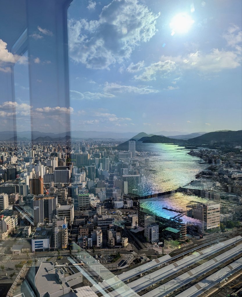 View from the tallest building in town. While this is kind of a bad photo, I like how the reflection of the sea looks superimposed over the city. It feels like you’re looking through a gap in spacetime or something