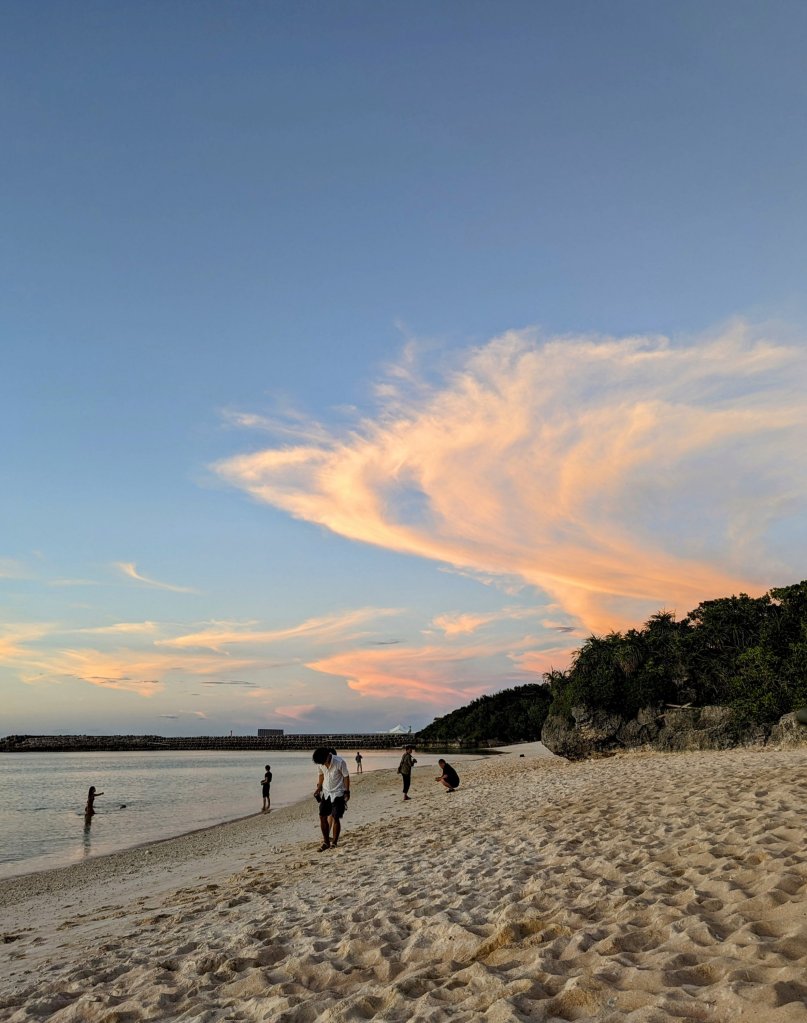 Neither Kenny or I are particularly fans of swimming. However, when the water is this blue, you can’t not take a dip, especially seeing as we were assured we would encounter wild sea turtles in the water. We visited the nearby Nishihama (west beach), rented some snorkels and went paddling about. As promised, we saw a number of sea turtles, as well as sea urchins, hermit crabs and loads of different types of tropical fish. I’ve never seen sea turtles in the wild like that before so it really was special. We visited the beach a few more times to watch the sunset, one of which was for sure one of the most wonderful I saw while on my travels.