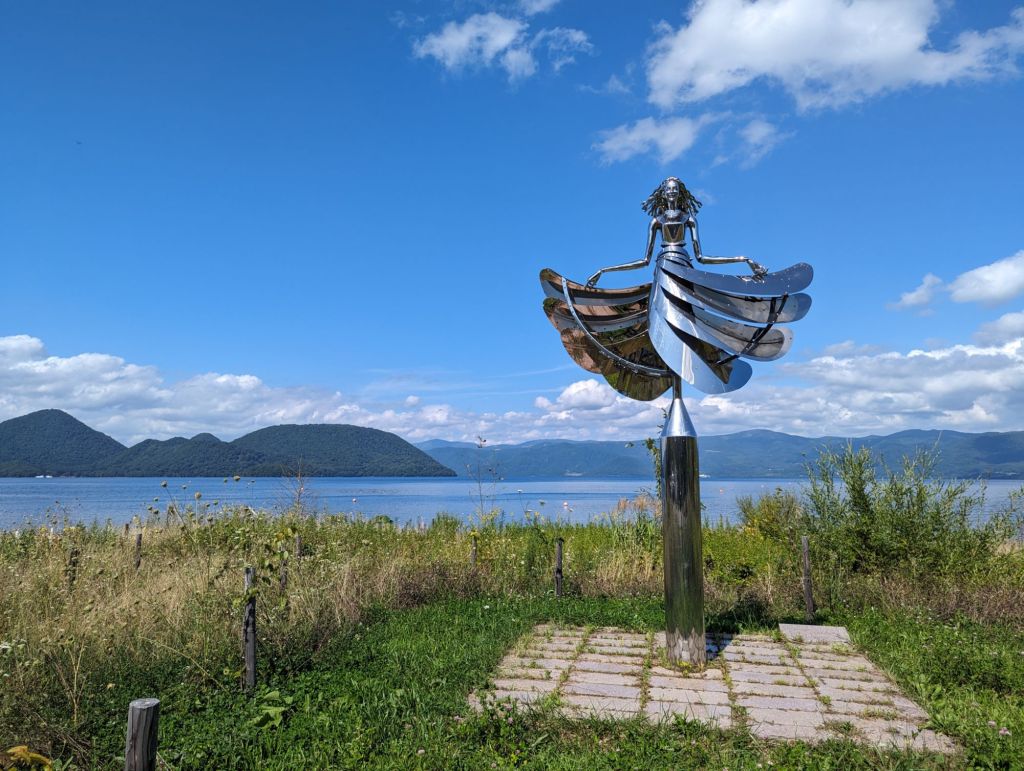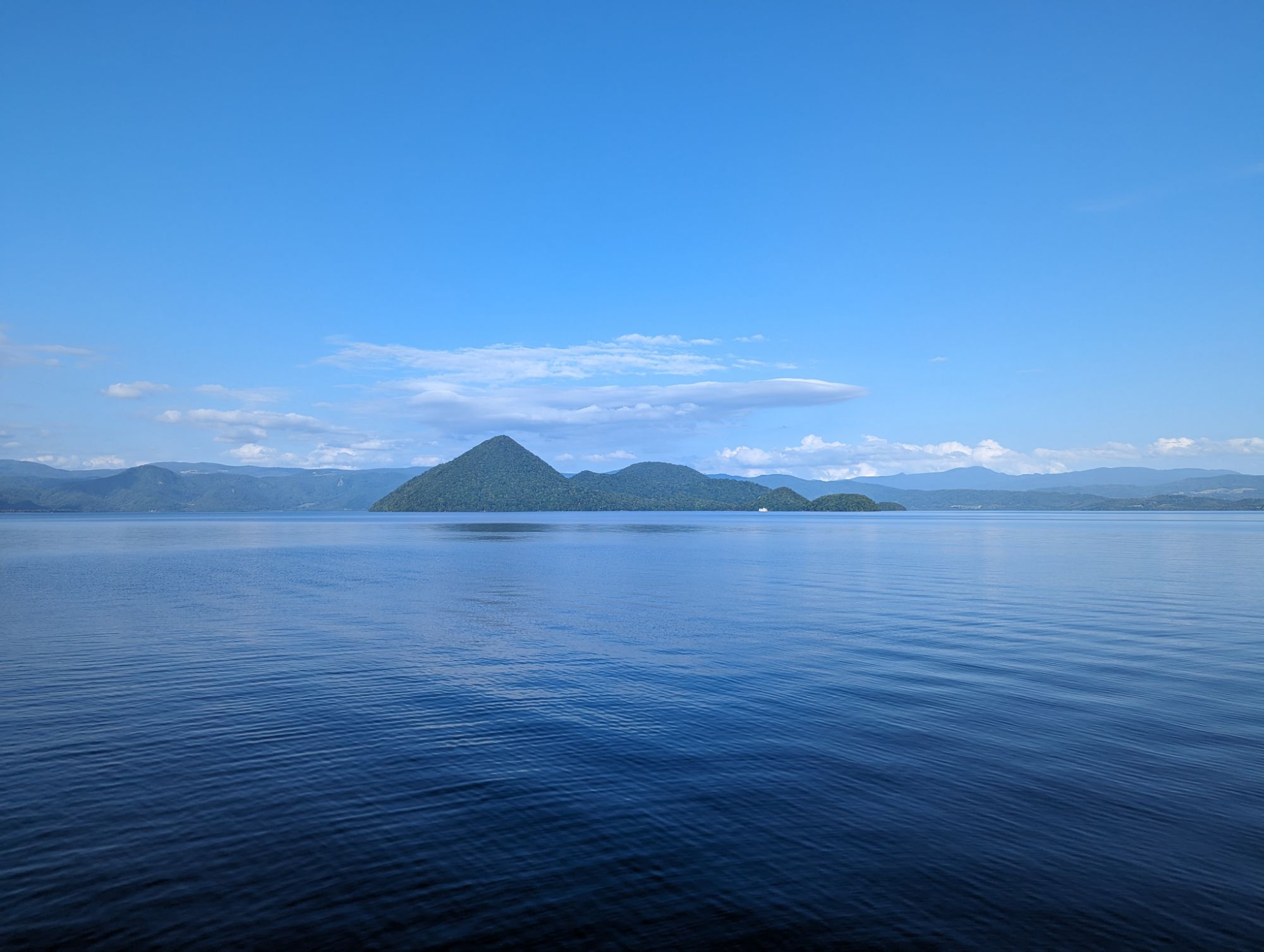 The day after I hopped back on a train heading north and visited Lake Toya. It is a place of extraordinary natural beauty; a volcanic caldera lake 10km in diameter, almost perfectly circular, with a picturesque little island in the middle. I was blessed to be visiting on a gorgeous sunny day which meant the lake was an astounding, dazzling blue. I hired a bike and cycled the road around the lake, which for me was quite a challenging physical endeavour, not least because of the heat. You know, for someone who never cycles recreationally, and seldom gets out of the city, I really was loving life on this bike ride. You only need to see the photos to understand why.